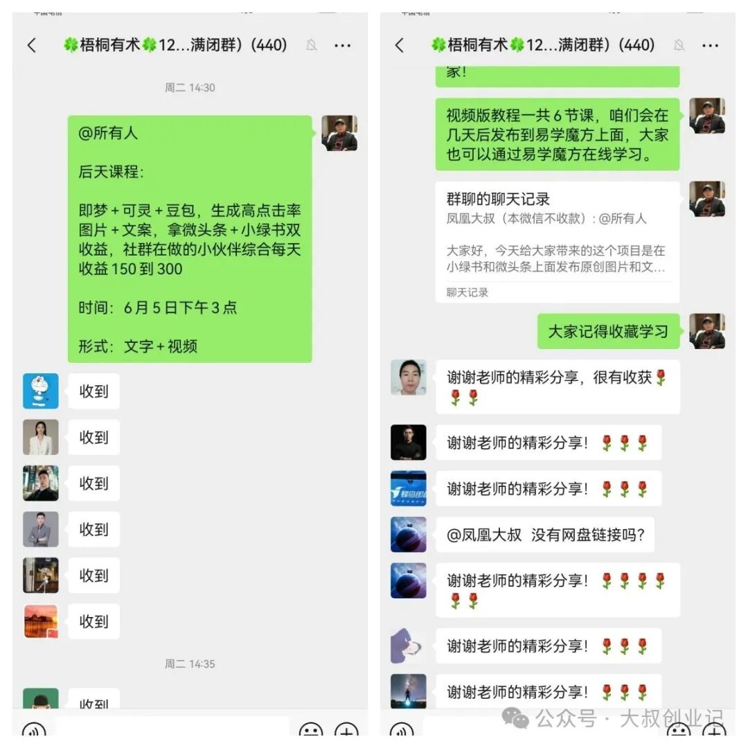 梧桐有术目前有37个社群,总群员近12000人,社群里每周都会分享1-2个亲测靠谱的、能落地实操、易上手的项目和热门赛道玩法。